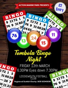 Doors open 6.30pm eyes down 7.30pm , half time refreshments and raffle